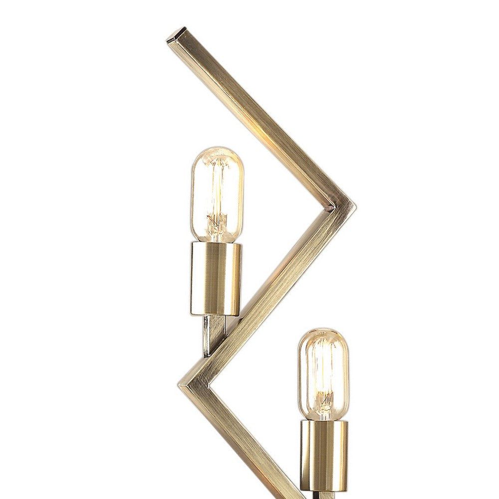 Elevate your interior decor theme in an instant with this luxurious accent table lamp, offering a unique charm and practical lighting solution for any space. Its sleek zig zag design and brass finish holds three light bulbs and fuses modern elegance with any tabletop you place it upon. All in all, this is a versatile visual accent that is perfect for the living room, bedroom, or home office.