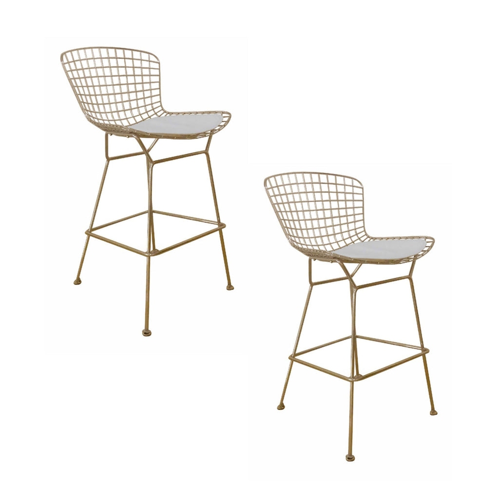 Introduce our modern Hely barstool chairs to your beautiful home decor theme today for a bar height table space that boasts high taste and charm. These chairs are constructed with a metal net frame in a gold finish, adding a touch of modern style and functionality. The set features extra soft and plush cushions for utterly wonderful comfort while seated.