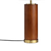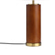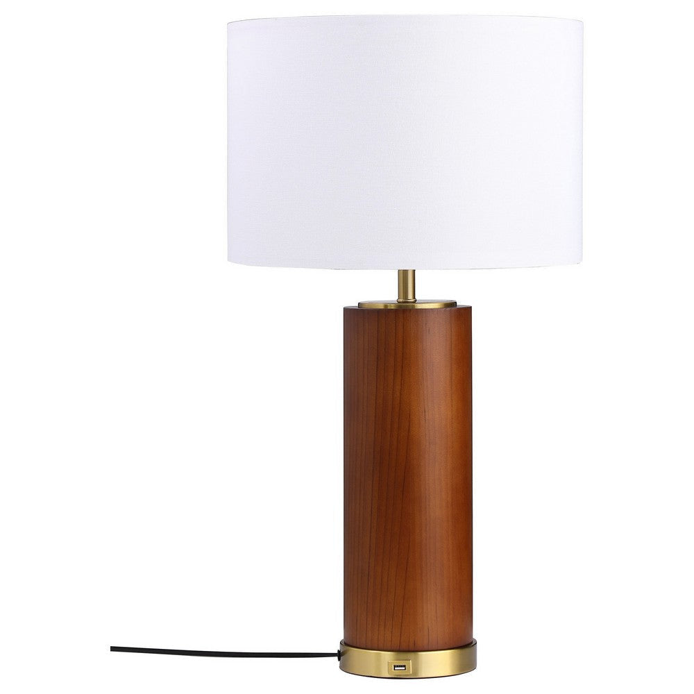 This modern table lamp exudes elegance and charm with its timeless design and impeccable craftsmanship. Crafted from wood in a rich brown finish with gold metal accents, it radiates warmth and sophistication, adding a touch of natural beauty to any space. Meanwhile, the soft white fabric shade gently diffuses light, creating a cozy and inviting atmosphere.