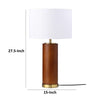 28 Inch Table Lamp, White Fabric Drum Shade, Gold Metal, Brown Bridge Base By Casagear Home