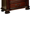 Boasting handmade elegance, meticulous craftsmanship, and purposeful functionality, this classic vintage-inspired wooden nightstand with drawer storage brilliantly elevate the decorative styling of any room, from the master to the guest bedroom alike. It features three spacious drawers for storing reading material and other essentials while the body is crafted with sturdy wood and gorgeous long-lasting wood veneer. Its wide tabletop and rounded edge posts make corners softer and safer throughout the night. Meanwhile, with sleek reeded bun feet, this nightstand shines with its rich and elegantly carved trim details along the edges and its antique style drop metal handles for a touch of glamor and high taste. All in all, this beautifully crafted nightstand proves that simple, well made pieces can serve as sophisticated and charming accents to any interior style.
