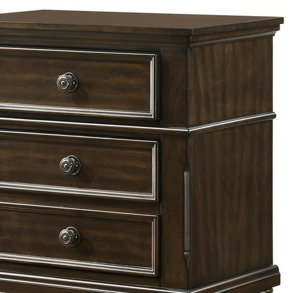 Description:Get a transitional look at your bedroom with the inclusion of this amazing Nightstand. Constructed from solid wood, it showcases molded details and features 3 storage drawer with metal knobs for access. It is supported by bun feet, providing stability and durability.