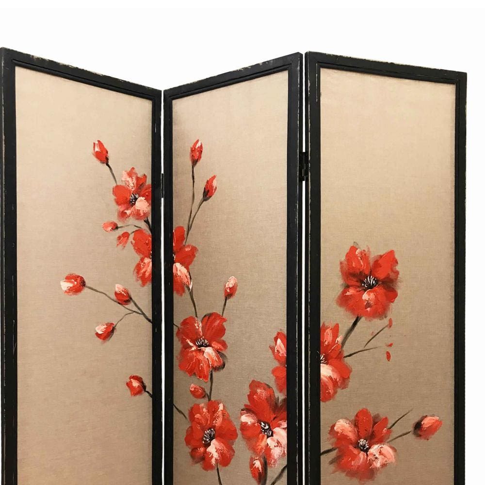 - It is a foldable screen having 3 panels with hand painted fabric design