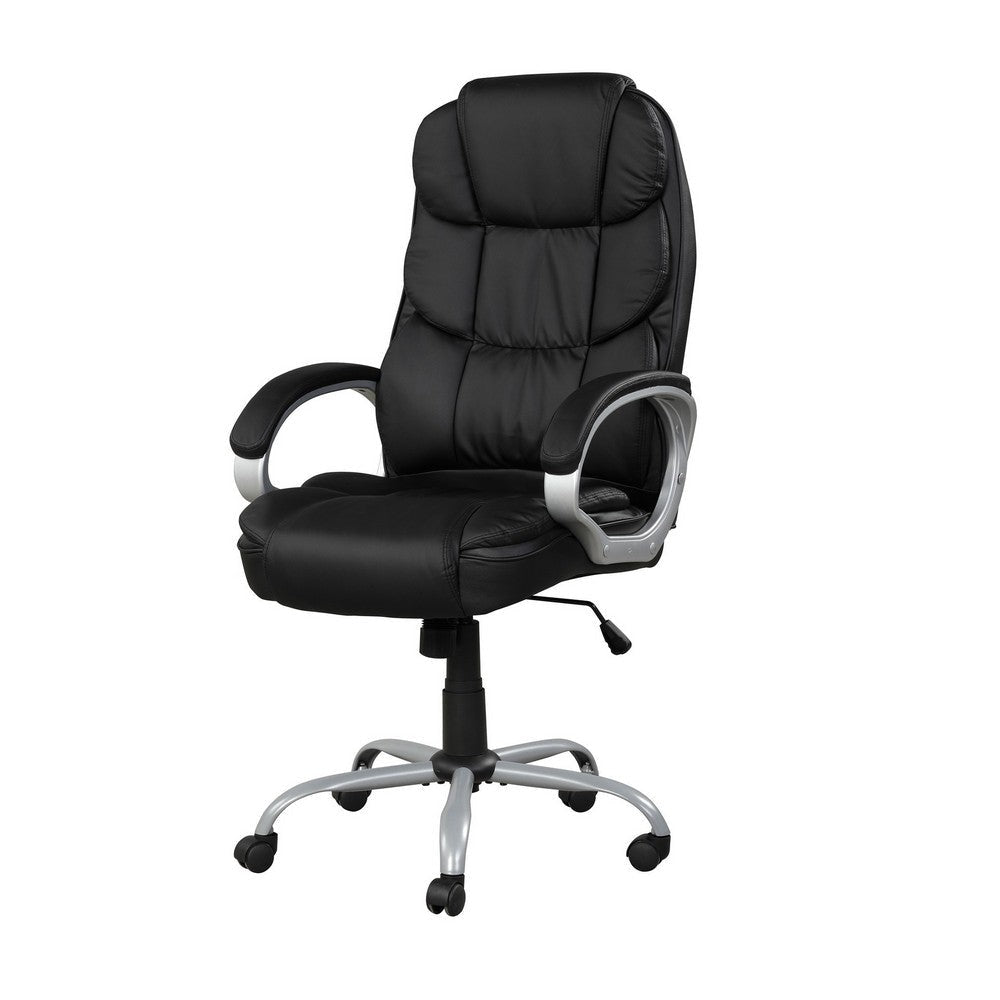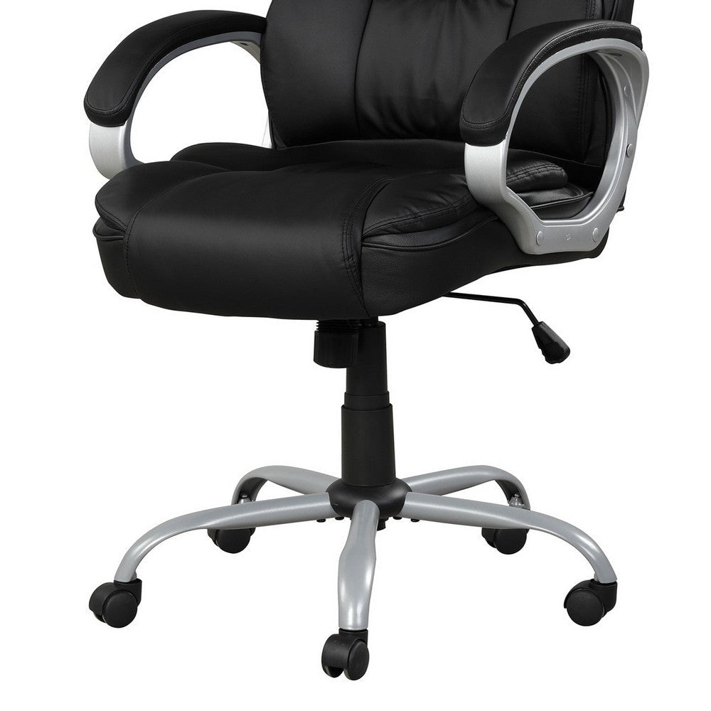 30 Inch Office Chair, 360 Degree Swivel, Cushioned Black Faux Leather By Casagear Home