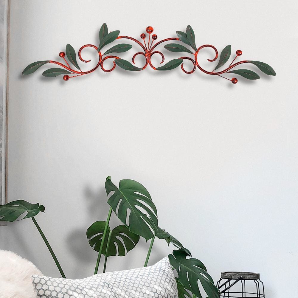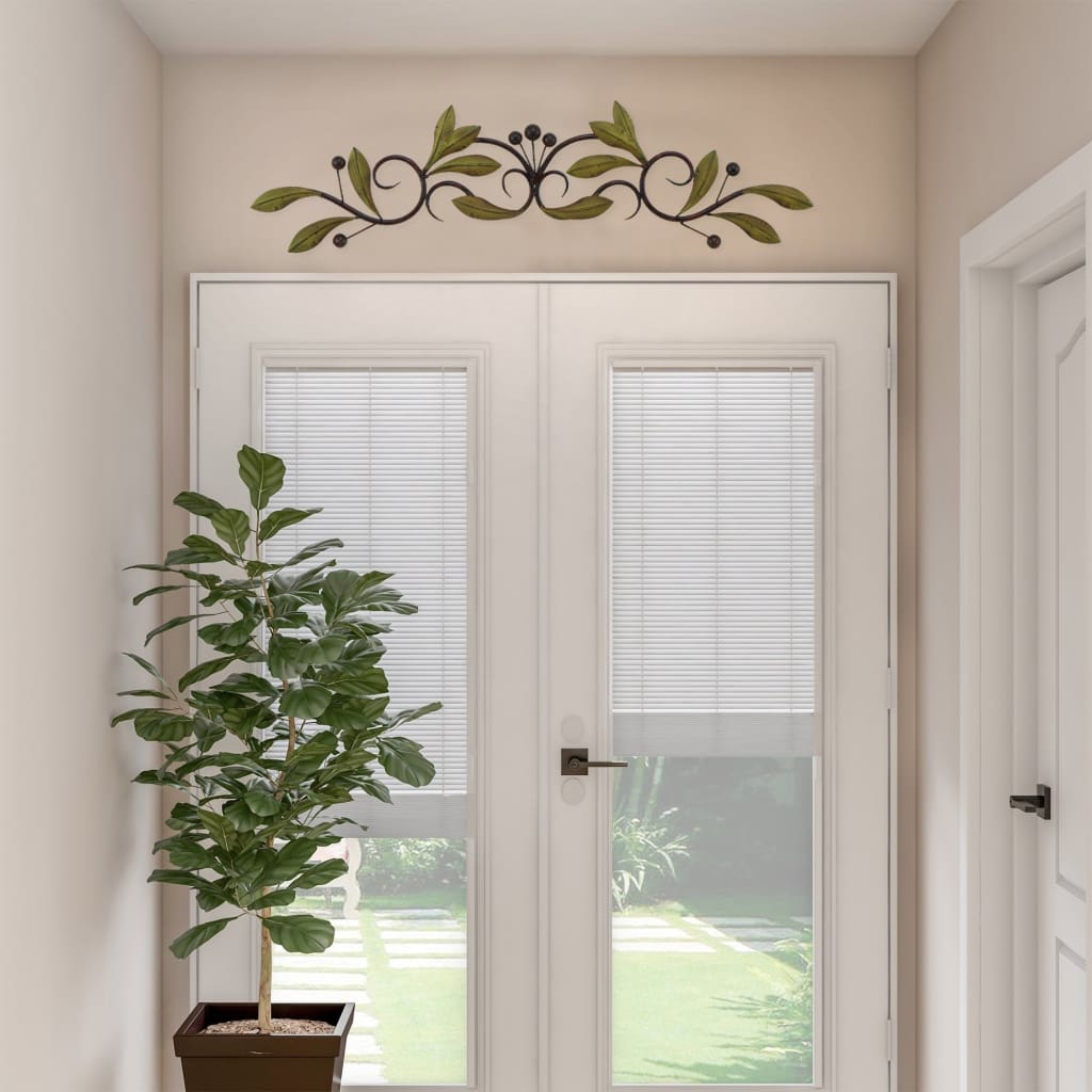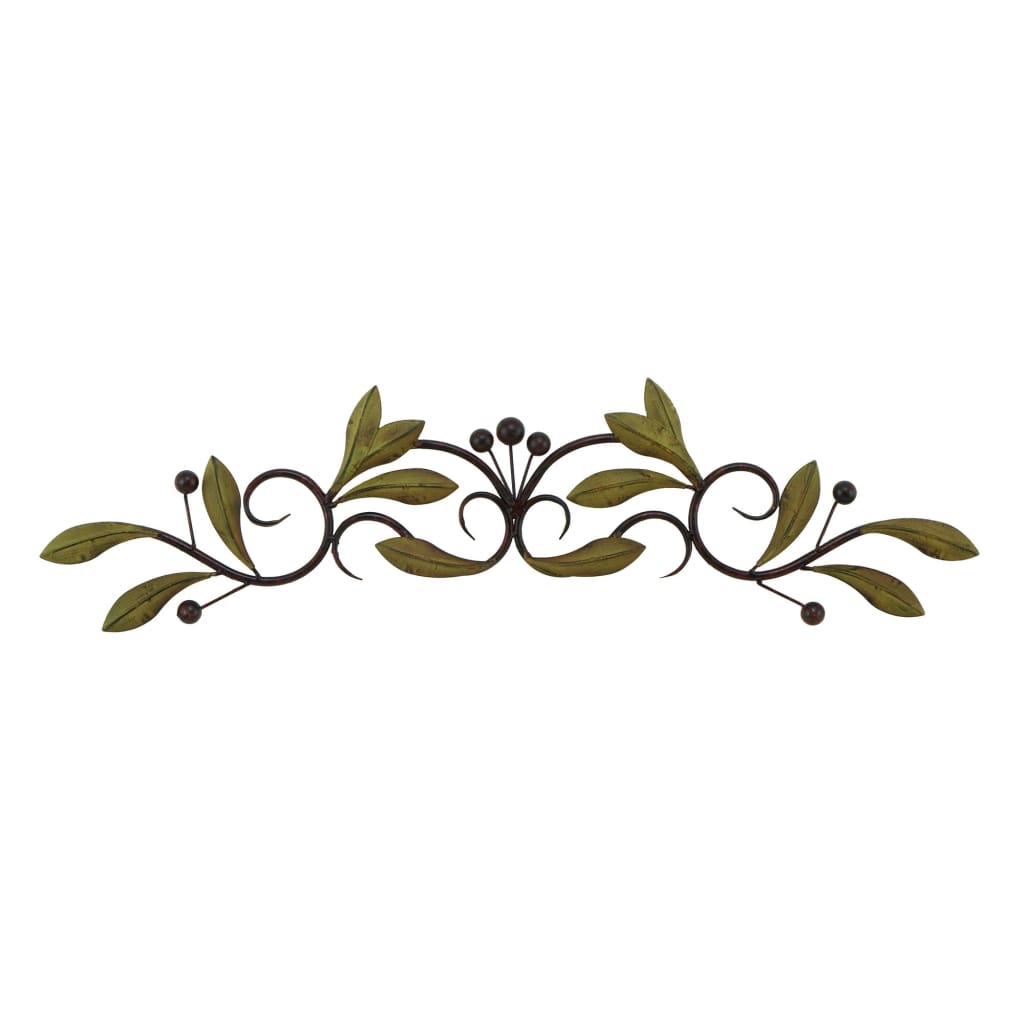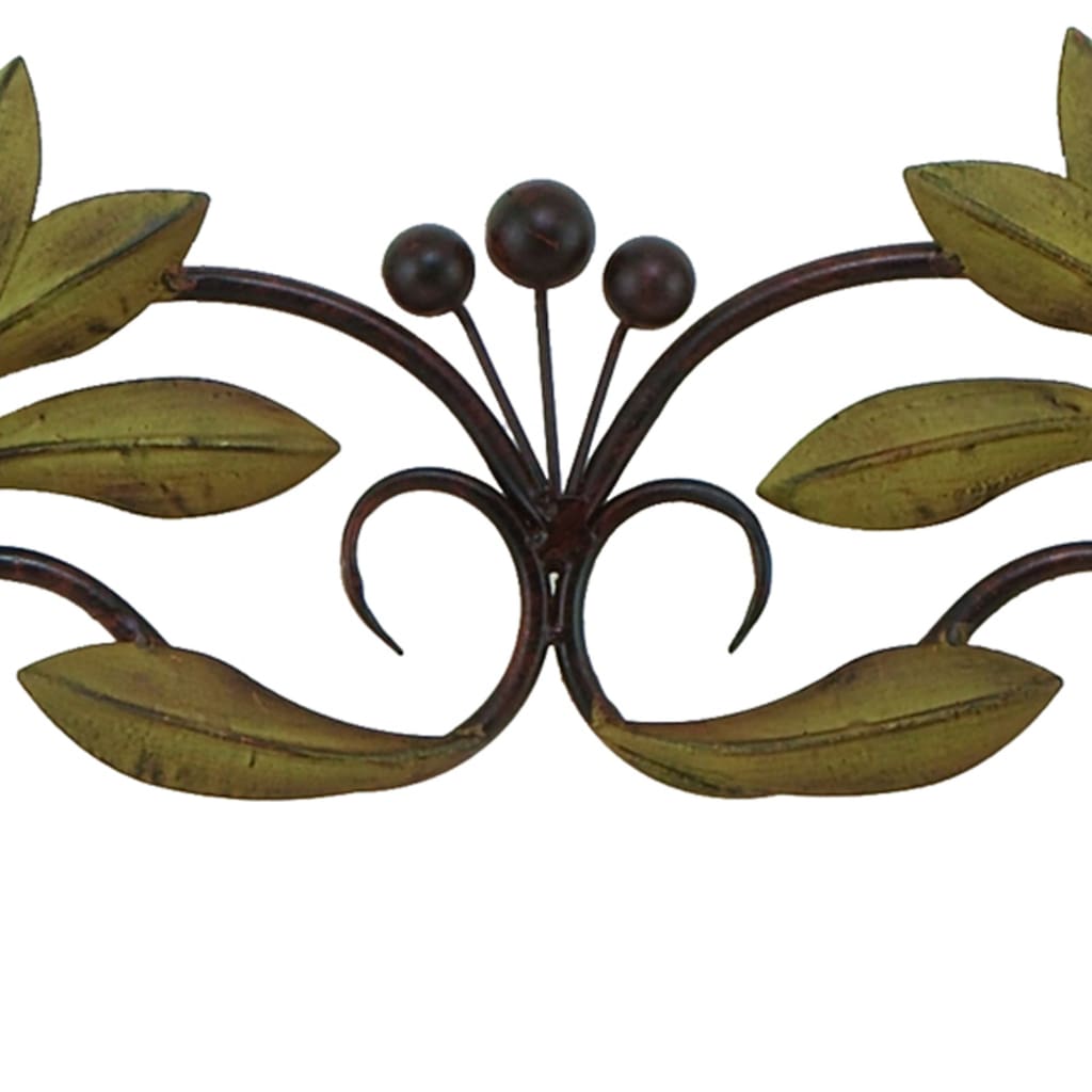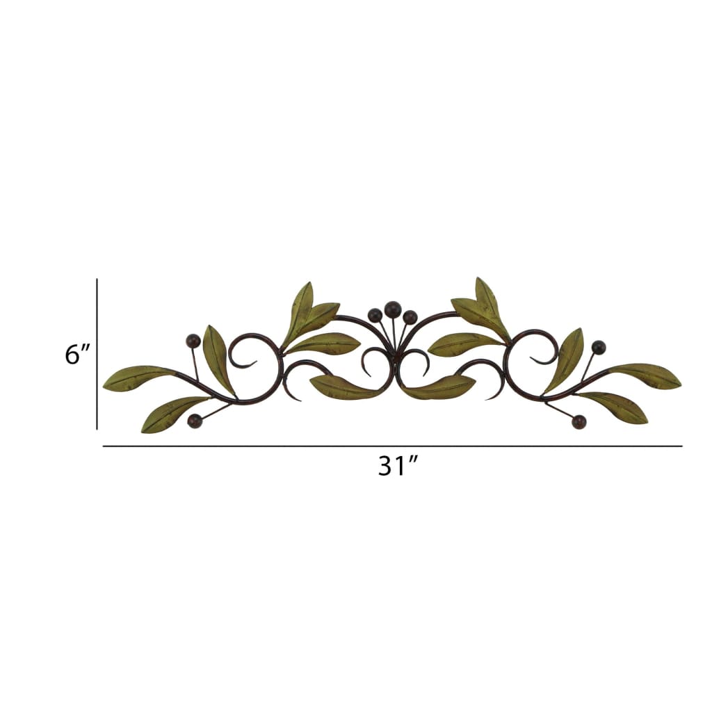 This lovely olive branch door top wall Decor features leaf design that makes it eye-catchy. Made up metal for prolonged durability, it showcases a dual tone finish of green and brown complemented with distressed details. It is extremely convenient to be hanged on any wall. A perfect mixture of modern art with nature-inspired design, this alluring wall decor is the perfect addition to your home or any outdoor space.