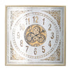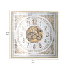 32 Inch Wall Clock, Decorative Gear Design, Square, Iron, White and Brown By Casagear Home