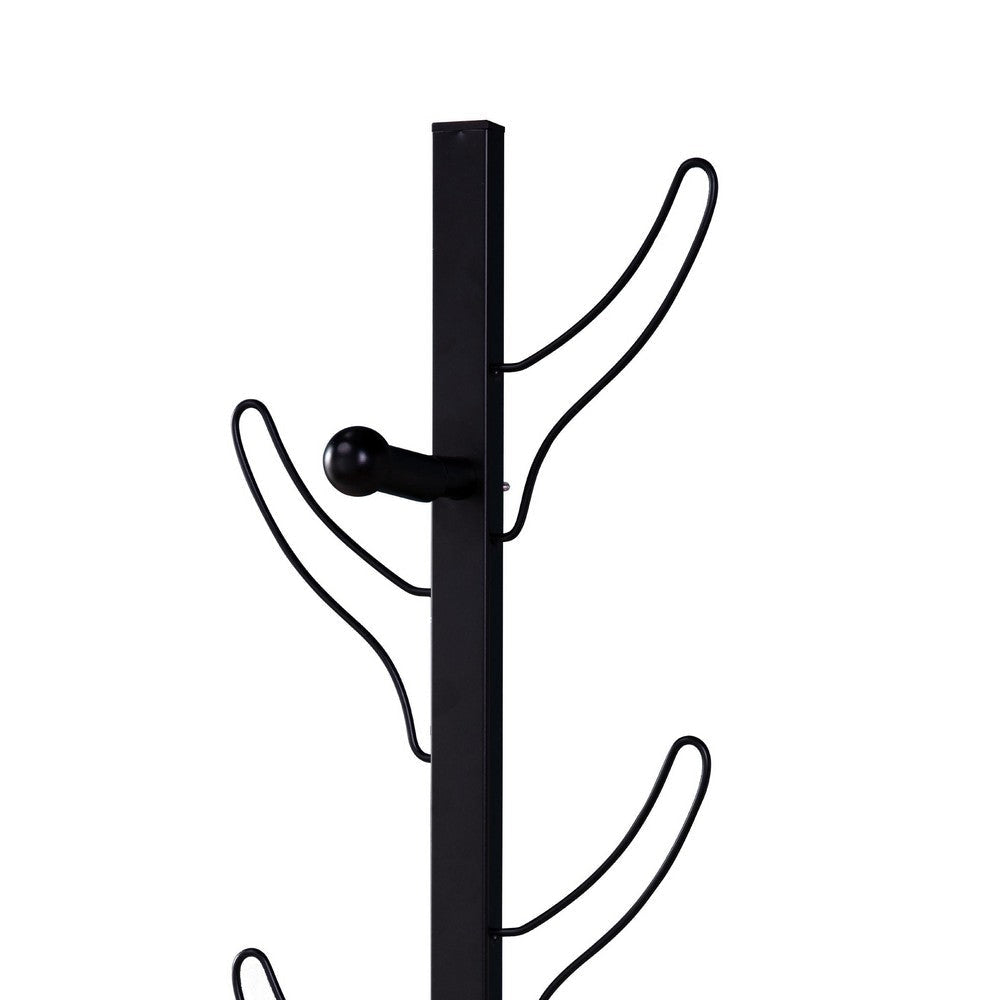 Description:Make your entryway functional with this sleek wall-mounted coat rack. Crafted entirely from durable metal in a rich black finish, it features eight thoughtfully designed hooks for hats, scarves, coats, and bags. The rounded side antlers help prevent dents in delicate fabrics, while the dual-prong hooks ensure scarves stay securely in place. Explore our Zubo collection by Casagear Home.