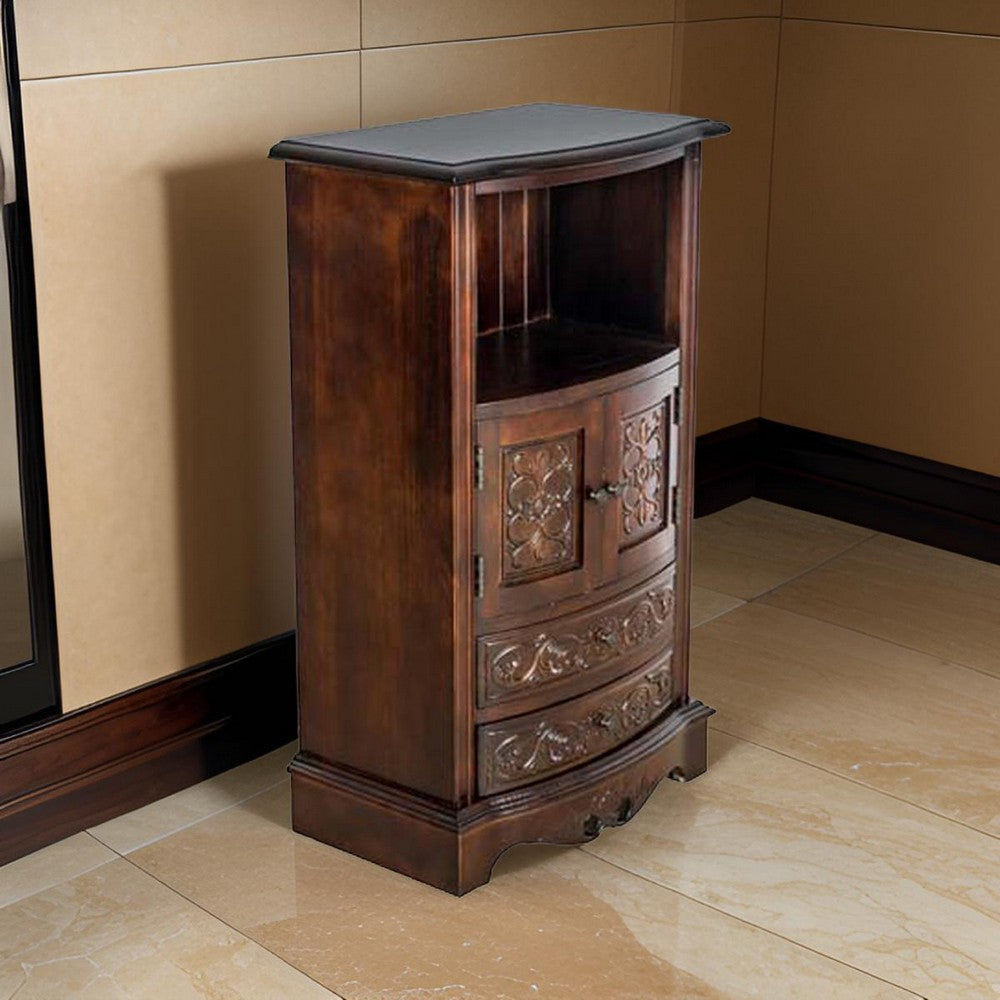 - Spacious storage with 2 drawers, 1 open shelf and a 2 door cabinet