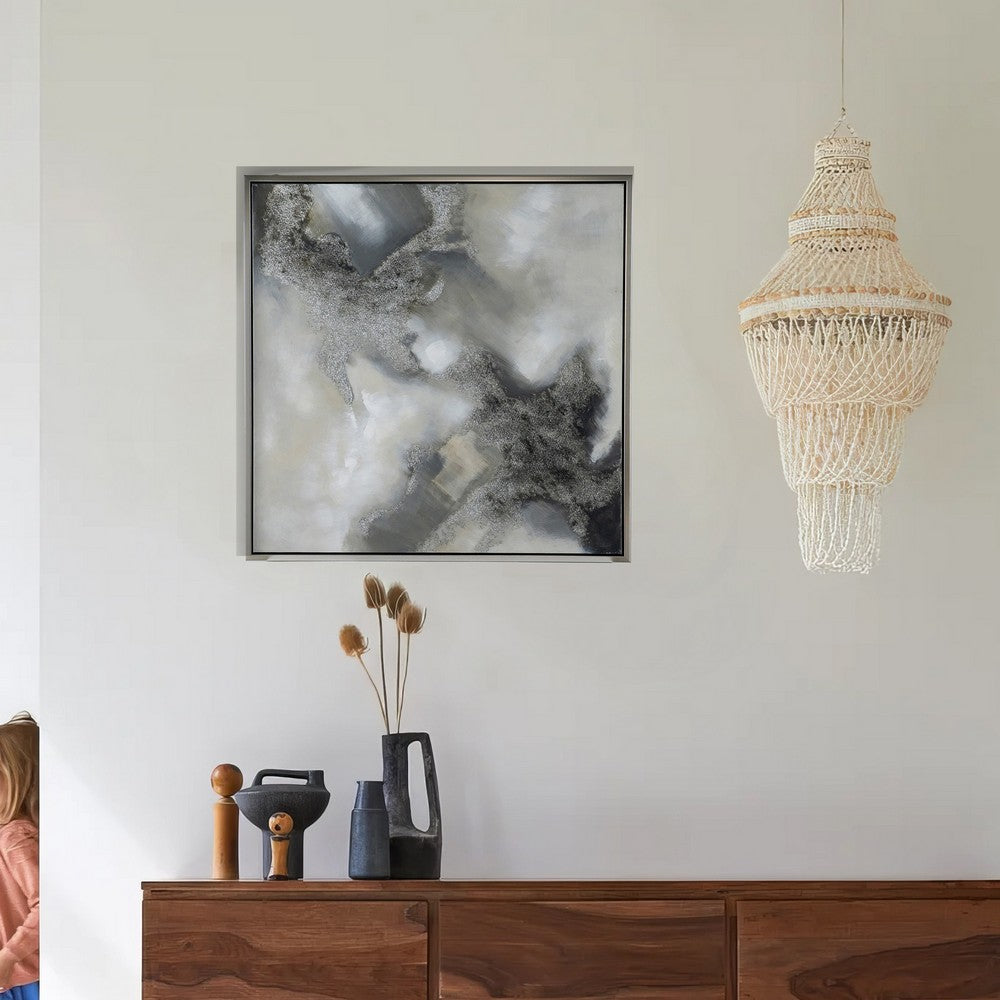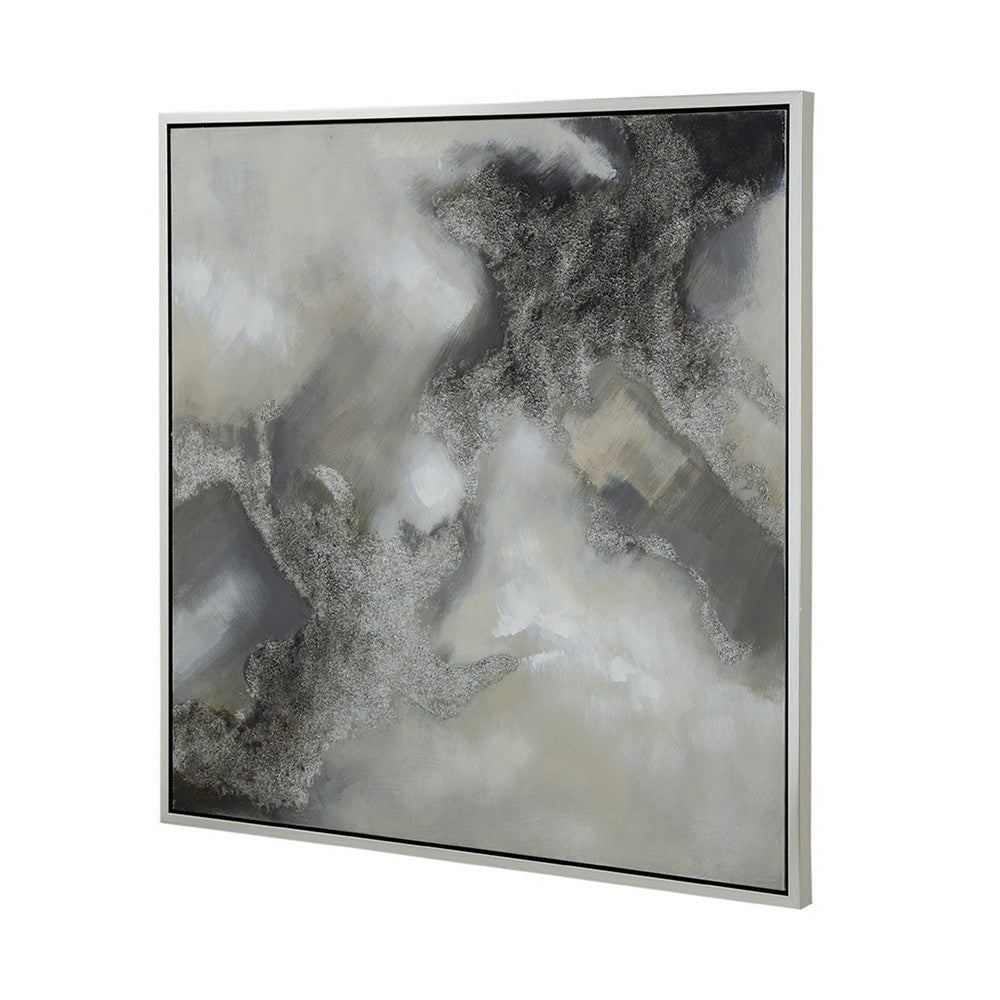 39 x 39 Stormy Skies Framed Handpainted Wall Art, Square, Canvas, Gray By Casagear Home