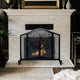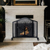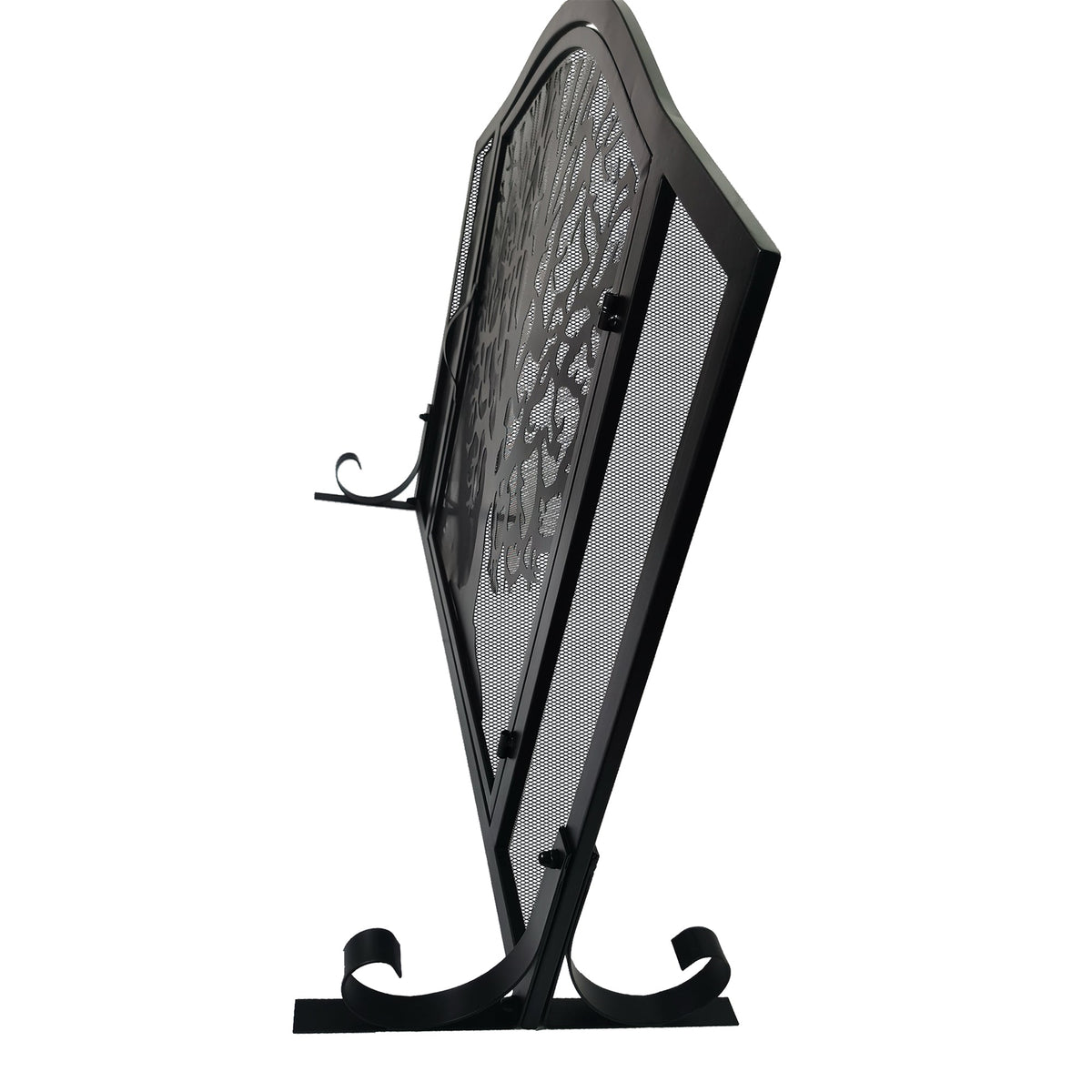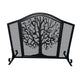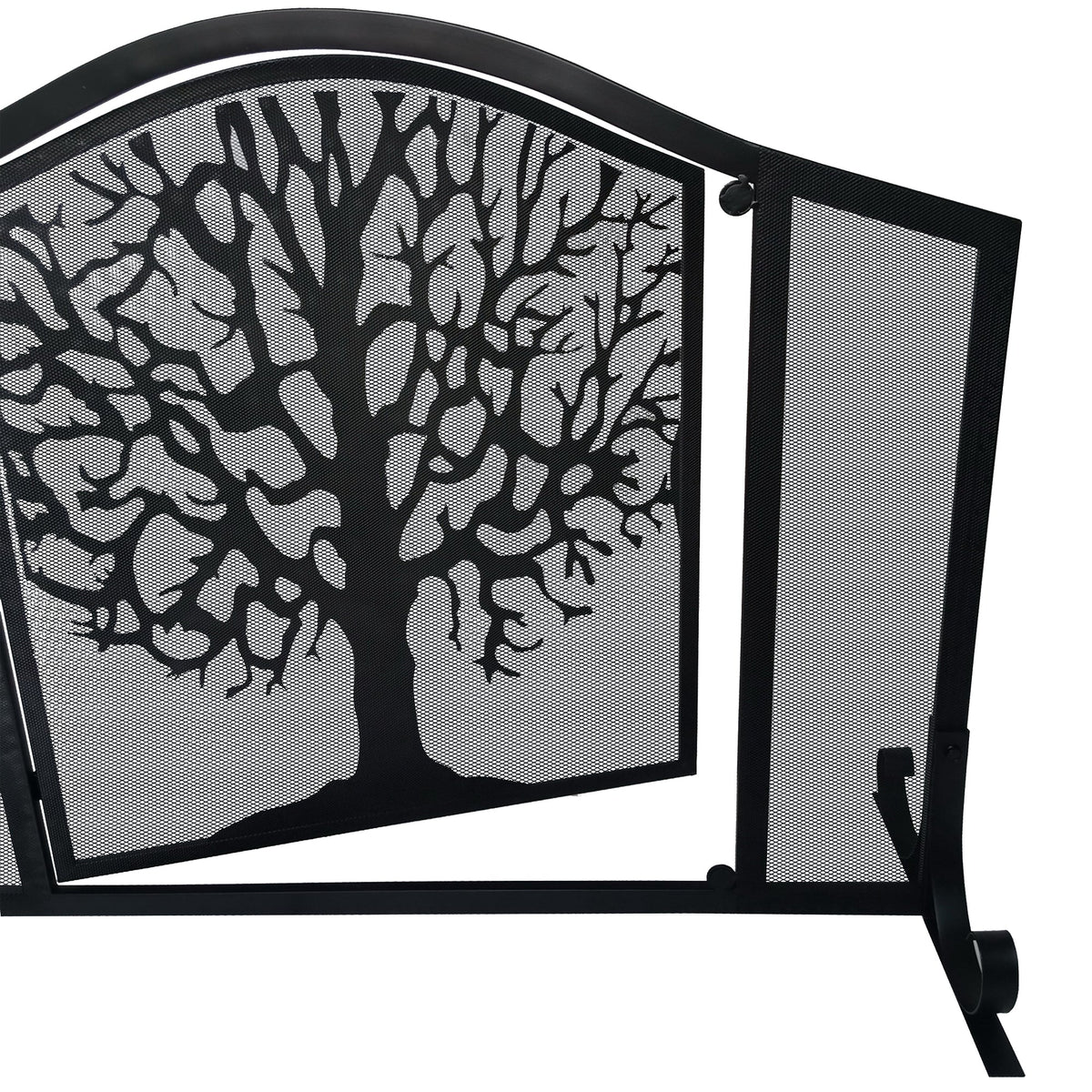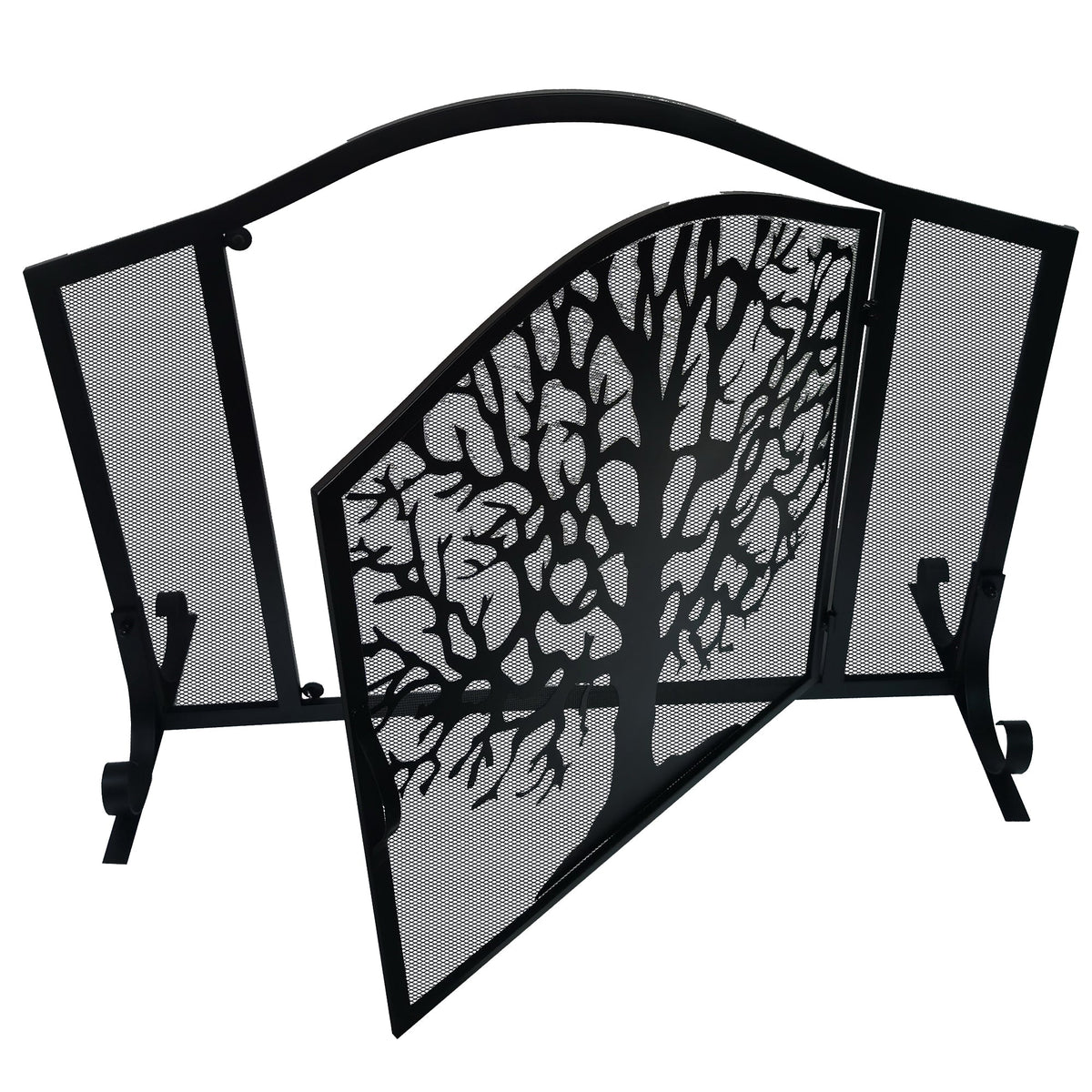 Expertly crafted, this fireplace screen is designed to keep your home and your loved ones safe while relaxing in the family fireplace room or lounge. The three panel design with mesh helps to shield excessive heat or reduce embers coming from the fireplace to provide a warm and safe evening. It also protects you and your kids by reducing any potential damage or expulsions caused by the fire. Handcrafted from a lightweight yet sturdy iron frame in black powder coated finish, it has an arched style top and a center door panel that depicts a gorgeous art display of the tree of life. This fireplace screen is supported on a stable frame with an elegant scrollwork at the base for added style.Shipping Information: