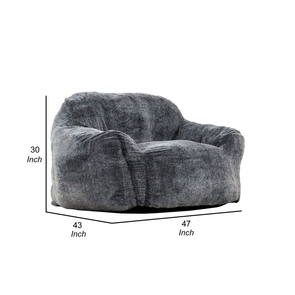 Description:This blue gray faux rabbit fur-upholstered bean bag chair exudes luxury and comfort. Its plush exterior adds a touch of sophistication to any room, while the memory foam filling ensures unmatched coziness. The round shape of its back and arms provides support, making it the perfect spot to lounge and unwind after a long day. It is perfect for sitting back when reading, watching TV, or relaxing.