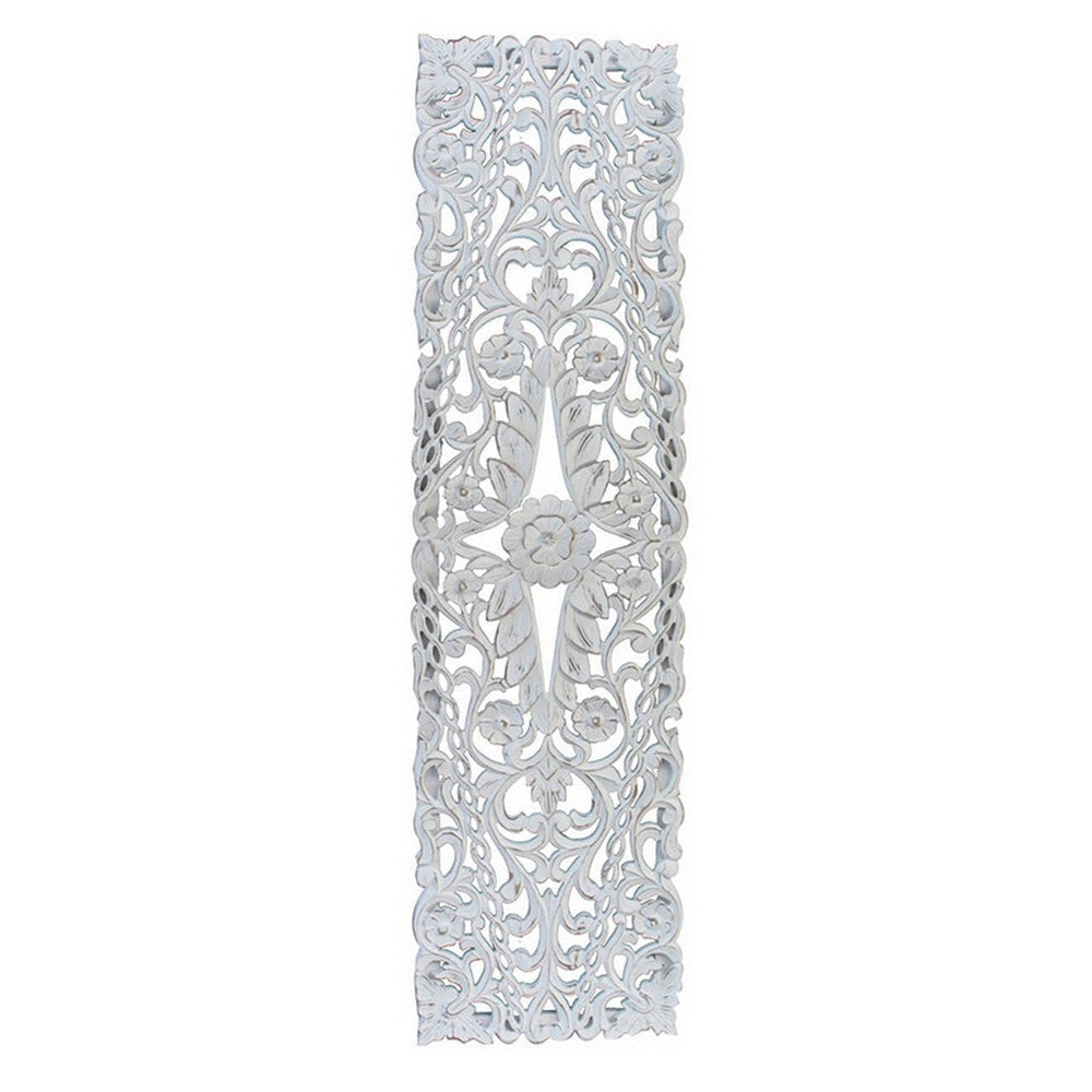Adorn your wall with this floral vine carved art panel. It is crafted from a blend of MDF, mango wood, and iron and has a white finish that matches any color scheme. The panel is tall and slim and features a carved design showcasing wood and metals beauty. The panel adds a touch of nature and artistic flair to your wall and is ideal for creating a unique and stylish atmosphere in your space.
