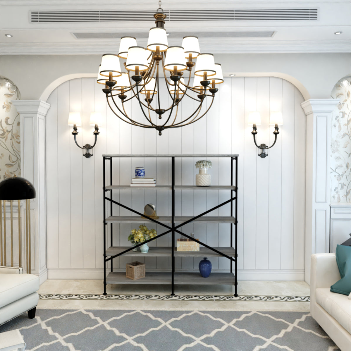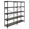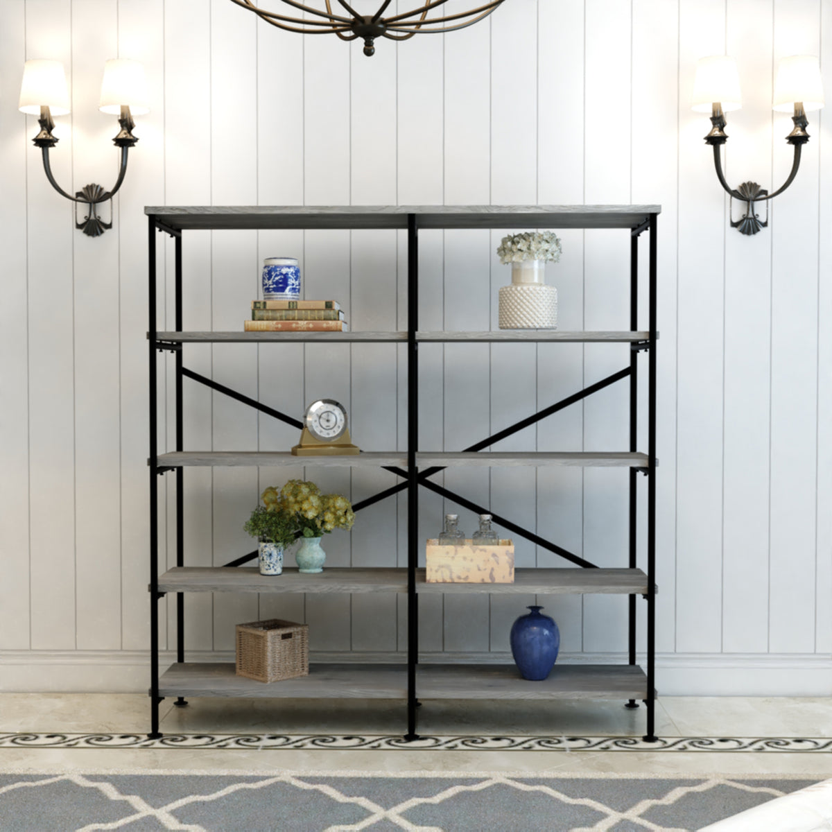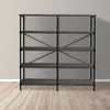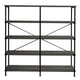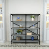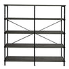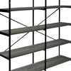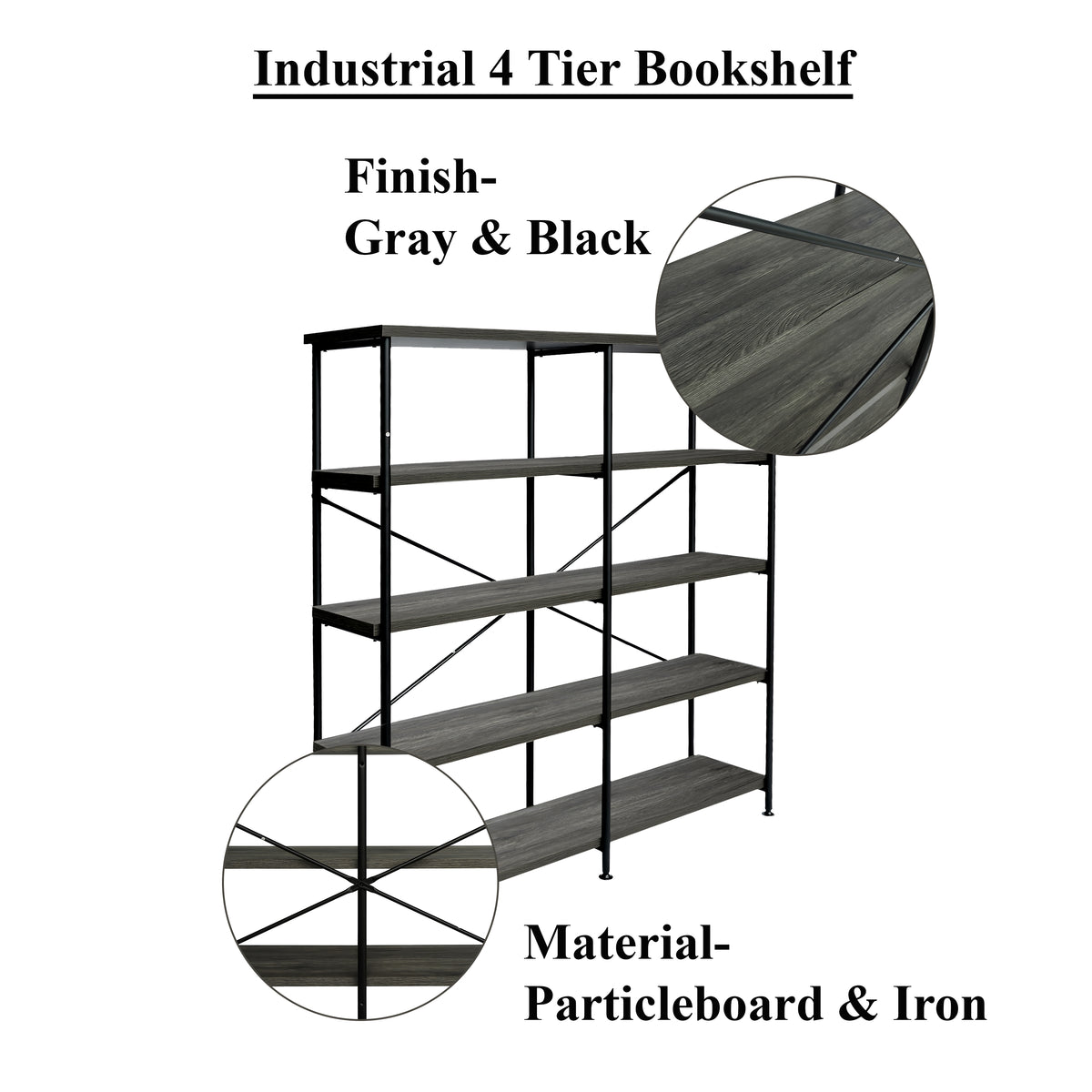 A unique blend of style and sophistication, this handcrafted bookshelf makes a perfect fit for your living room, foyer, office, or study space. Its four-tier shelving space to keep your books organized offers plenty of space to showcase your hand-curated decorations, vases, showpieces, and more. Crafted from premium quality particleboard and a lightweight yet sturdy iron frame, the gray shelves complement the black powder-coated frame. With an X-shaped bar accent on the back, it has floor protectors to prevent abrasions and scratches. Check out our Olga collection for more color options.