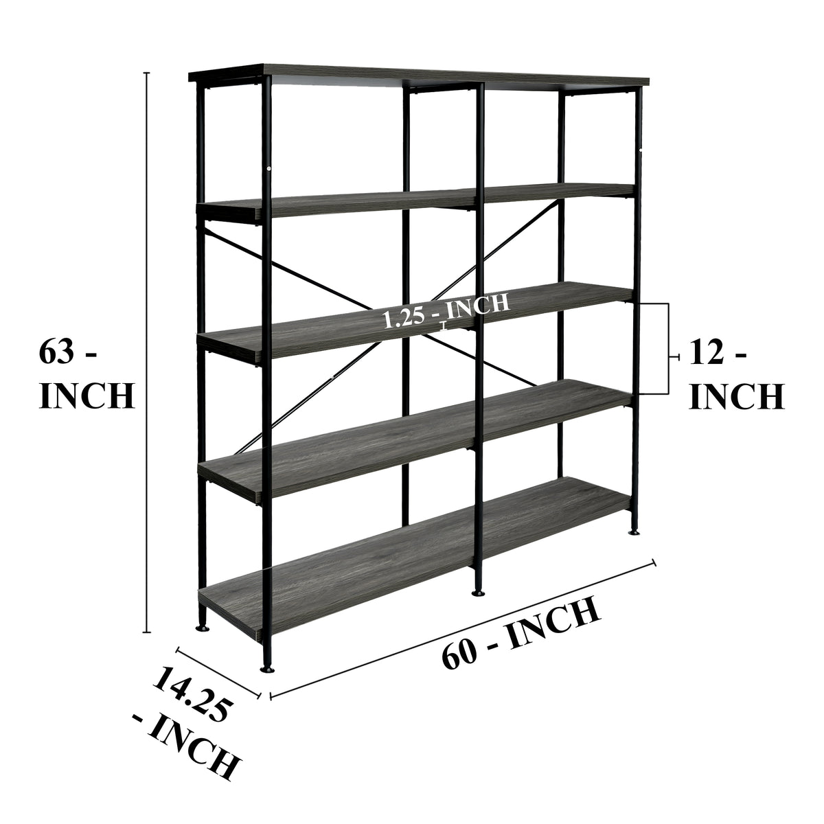 - 60L x 14.25W x 63H, in inches