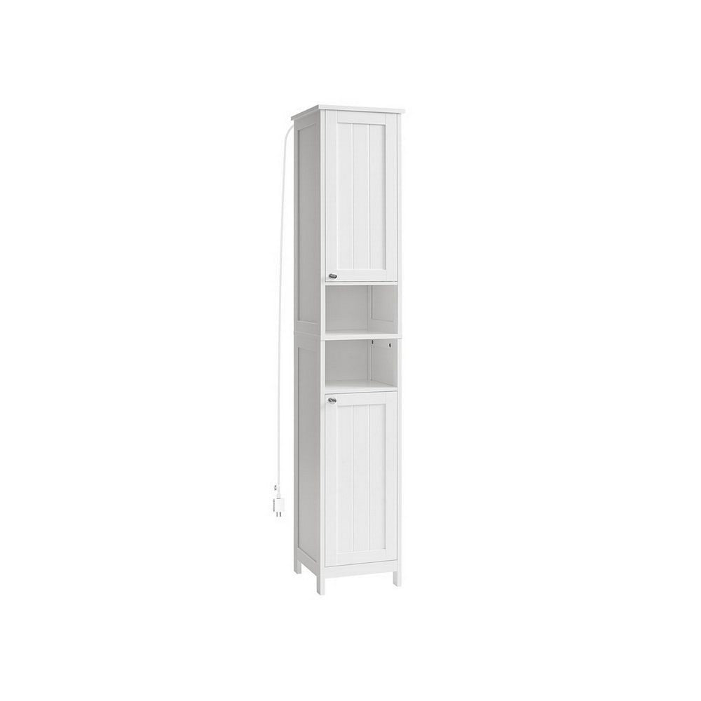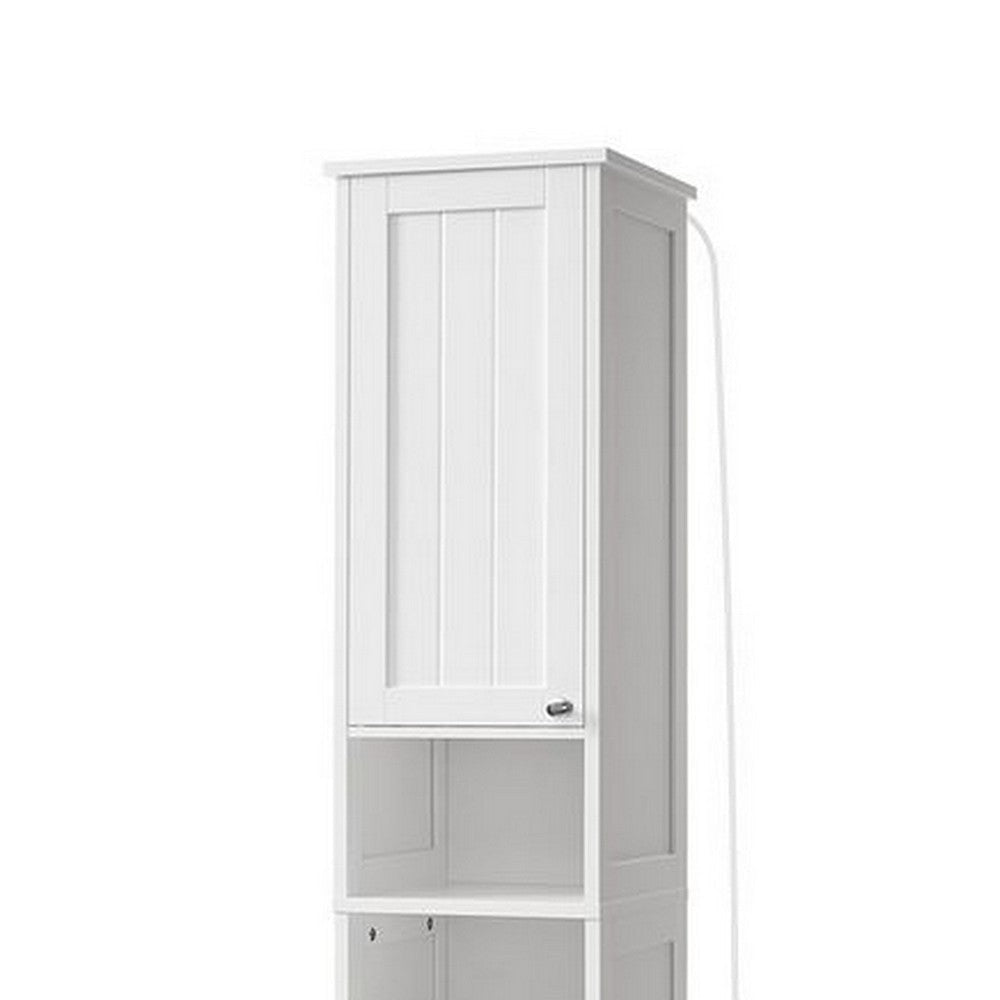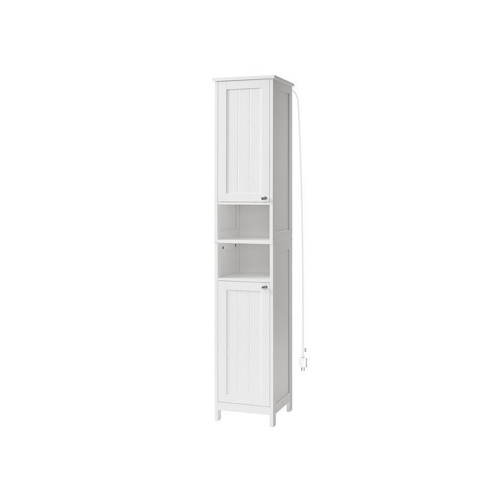 67 Inch Bathroom Storage Cabinet with Light, Adjustable Shelf, White Wood By Casagear Home