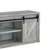 Description:Upgrade your entertainment space with this rustic farmhouse 71 TV Console that brings a country style touch in your home. The three shelves of the console provide ample space for media necessities. Constructed from MDF and particle board, it incorporates two barn sliding doors to complete the overall look.