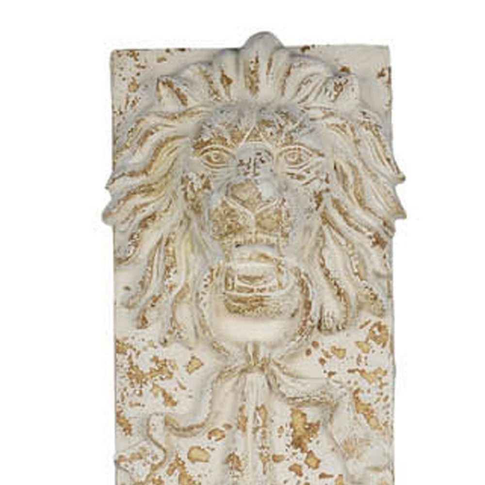 Make a bold statement with this lion knocker wall decor sculpture, meticulously crafted from magnesia and MDF, exuding strength and elegance. The pristine white finish sets the stage for its regal presence, while subtle gold accents add a touch of opulence. This masterpiece seamlessly combines durability and artistry, creating a captivating focal point for any accent wall in your home.