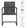 The Abacus Wicker Outdoor Dining Chairs set of 2 brings both style and durability to your outdoor space. Each patio dining chair is crafted with a cantilever steel frame, where the armrests, seat, and legs flow together in a smooth, continuous design, then wrapped in synthetic wicker, creating a natural, earthy look. The tight, horizontal basket weave of the wicker patio chairs not only adds texture and depth but also helps keep the wicker chairs weather-resistant and UV-protected, making them ideal for year-round use. Featuring plastic foot pads to prevent floor damage, the Abacus wicker outdoor chairs are an ideal addition to your patio, deck, or garden. Pair this set of 2 outdoor chairs with your existing patio decor, or opt for the full Abacus dining set with a matching wood table for a cohesive and stylish look. Weight Capacity of each wicker rattan chair: 300 lbs.