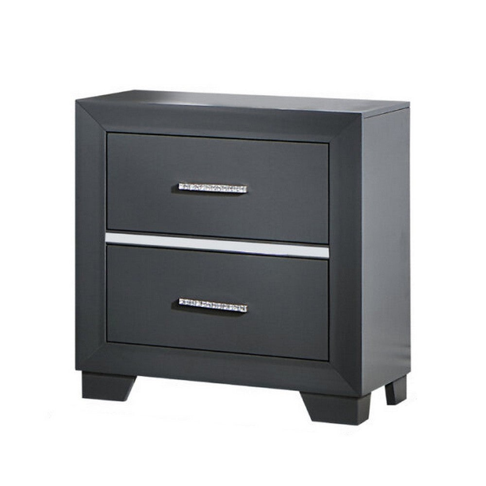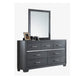 • Low profile footboard, nightstand and dresser adorned with mirror trim details
