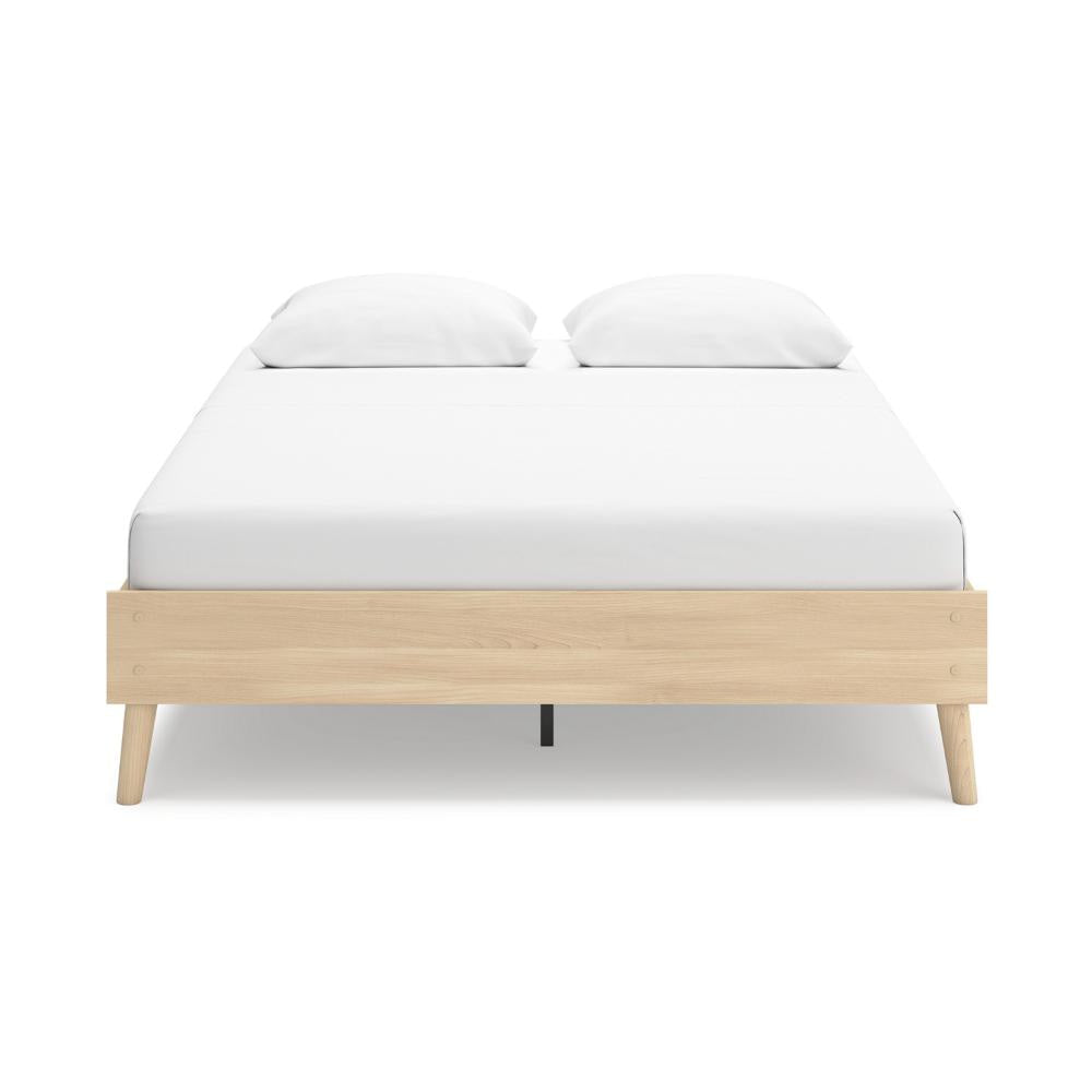 Ashley Abis Queen Platform Bed | Natural Brown Wood Low Profile Tapered Legs