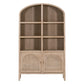 This elegant bookcase features a unique arched design and open shelving for ample storage. The solid wood construction and cane inlay doors add a touch of natural beauty. Perfect for living rooms, dining rooms, or entryways, this versatile piece can be used to display books, decor, or other items.
