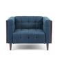 Accent Club Chair, Dark Brown Rubberwood, Navy Blue Button Tufted