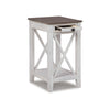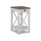 Blend modern function with vintage charm through this accent table constructed using solid wood, engineered wood, and veneer. Featuring a distressed white and gray finish, it showcases crossbuck supports that add a rustic touch. Complete with a storage drawer, shelf, and two USB charging ports, it combines style and practicality for your living space.