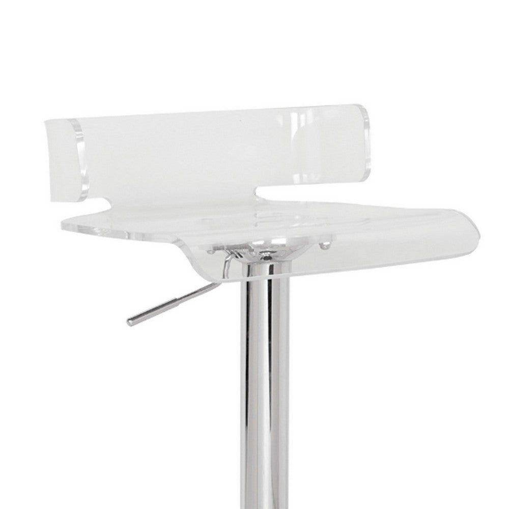 This clear acrylic barstool is perfect for any modern style dcor. This chair has a seat with a small flat back, and not only can it adjust in height, but also has swivel capabilities so none of your guests miss out on anything. Some Assembly Required.