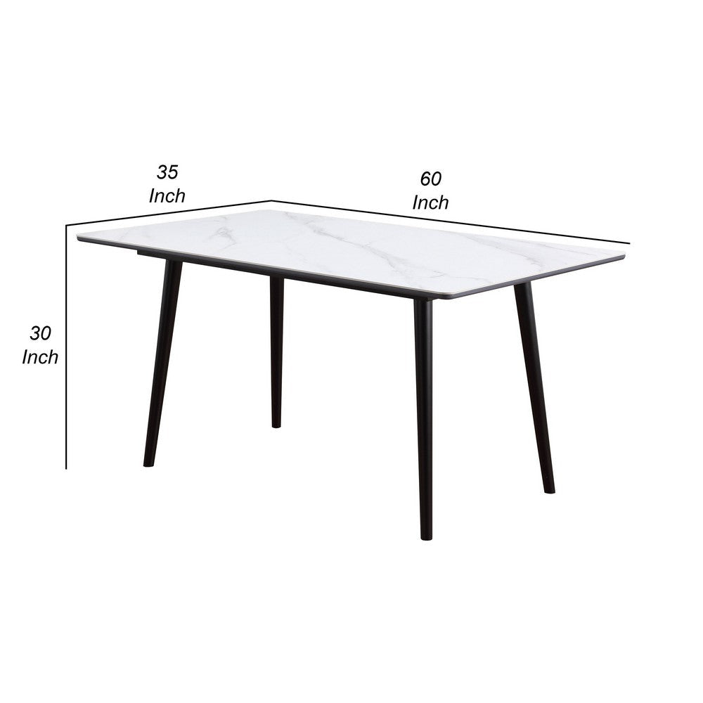 Aikya 60 Inch Dining Table, White Sintered Stone, Tapered Metal Legs By Casagear Home