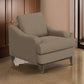 Elevate your living space with this armchair, a masterpiece of minimalist design and Scandinavian charm. It features a pine wood frame with a multi-step lacquer brown finish, ensuring durability. Its ultra-thick cushions, soft throw pillows, and light brown upholstery offer unparalleled comfort. With sloped arms and an exposed wood base, the Alfi collection is a luxurious addition to any home.
