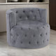 Alix 33 Inch Swivel Accent Chair, Round Design, Button Tufted Gray Velvet By Casagear Home