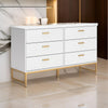 Description:Combine functionality with contemporary aesthetics in this six drawer wide dresser. Crafted with engineered wood, it offers both durability and affordability, while its goldtone metal accents and matte white finish deliver a sophisticated charm. Featuring smooth-gliding drawers and a safety-focused design, it blends seamlessly with modern and chic interiors. Check out our Alli collection for more.