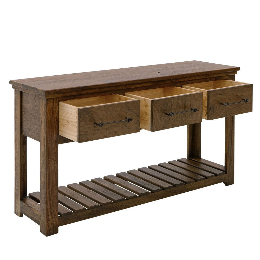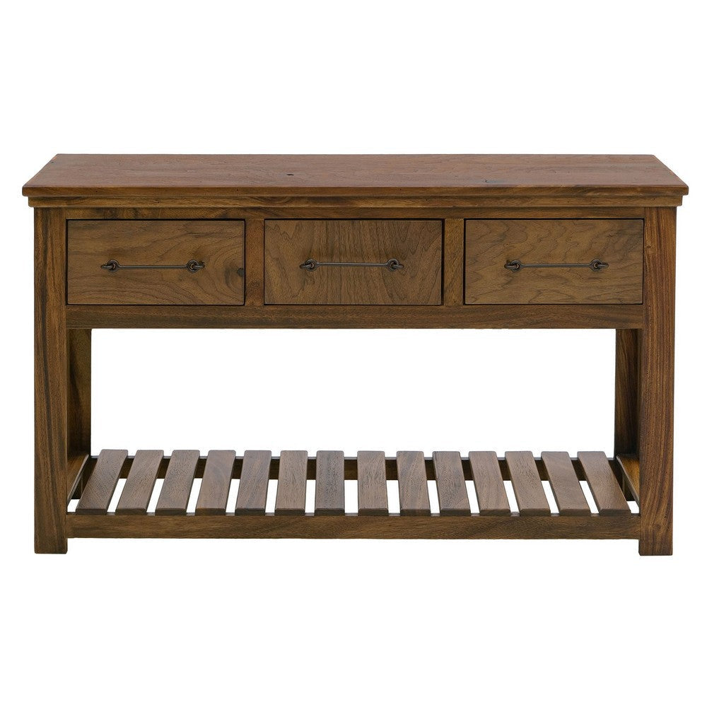 Ally Sofa Console Table | 3 Drawers | Slatted Shelf | Brown Wood | 54"