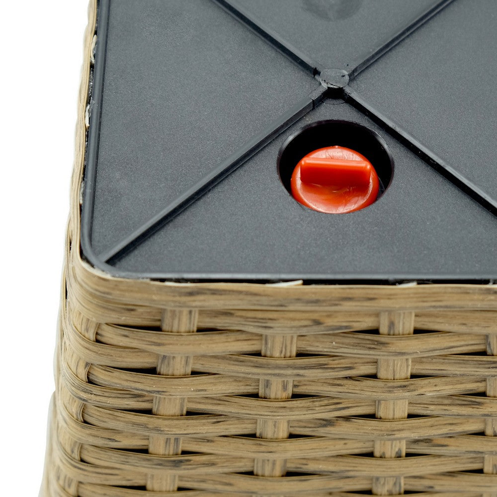 Marrying elegance with practicality, this set of two self-watering planters is crafted from rattan and plastic and embodies timeless charm. Its square wicker pot, intricately handwoven by artisans, serves as a testament to careful craftsmanship. The fusion of brown rattan and sturdy plastic ensures durability while adding a touch of sophistication. Check out our Aly collection for more.