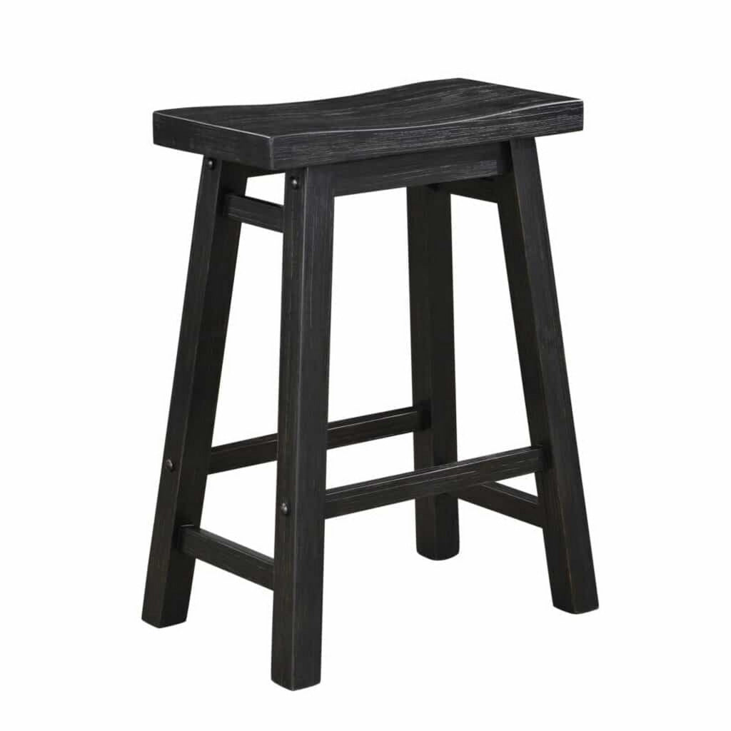 Description:Stylishly made and deeply comfortable, our gorgeous Amber saddle counter height stool is perfect for any kitchen island or counter-height table. Made from eco-friendly rubberwood, this saddle seat offers comfortable seating above built-in footrests and is done in a wire-brushed finish, making for a uniquely perfect dining accouterment. Check out our Amber collection for matching set pieces.