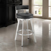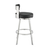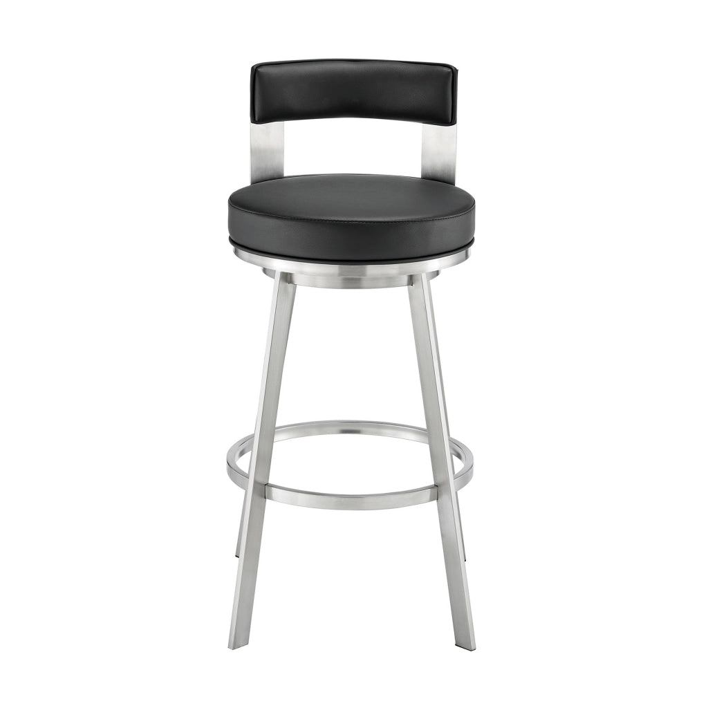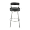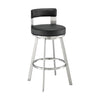 Description:Our Ami swivel barstool chair is meticulously crafted with brushed stainless steel for a style that seamlessly integrates with modern interiors. The black vegan faux leather upholstery not only enhances comfort, but adds a touch of sophistication with a curved open style back for support and a visually appealing silhouette. Check out our Ami collection for more options.