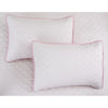• The comforter features beautiful flower print while coverlet is accented with quatrefoil quilted stitching.