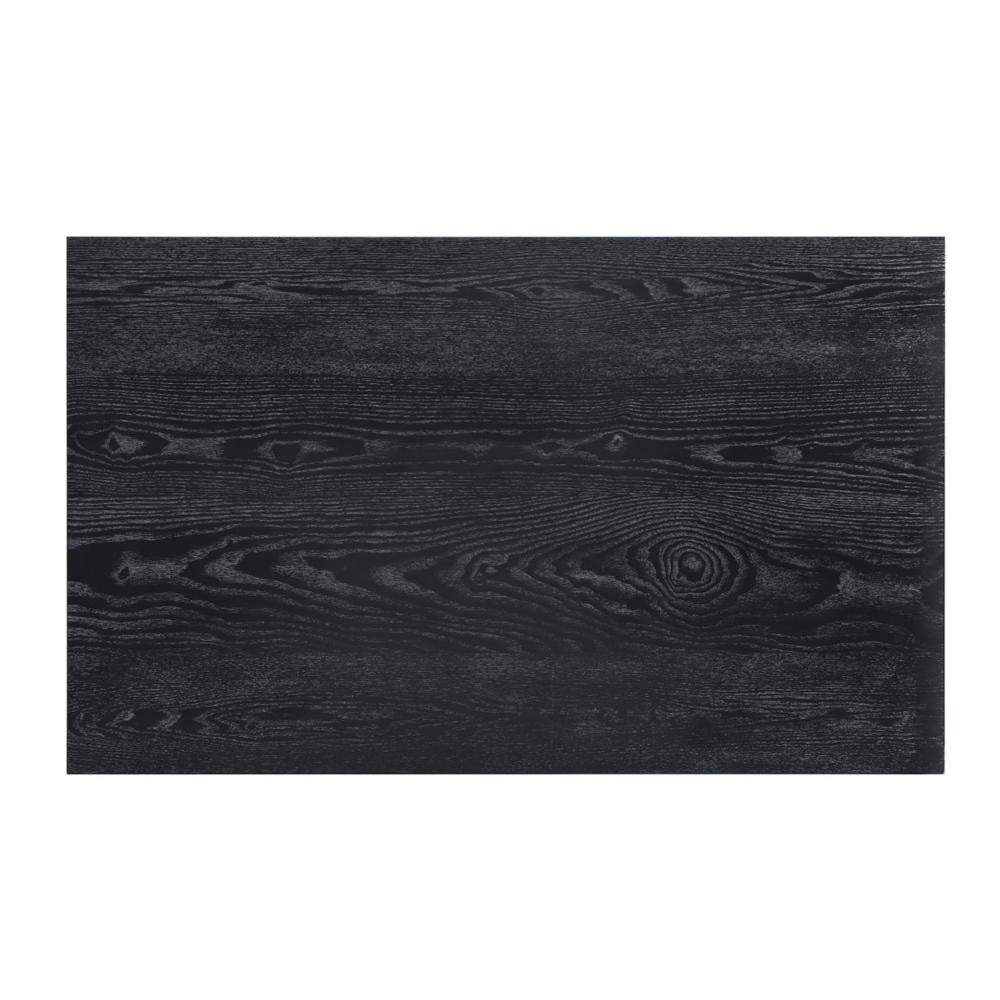 - Black finish is utilized over ash veneer highlighting the table's distinct veneer