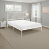 Angie Twin Size Platform Metal Bed, Subtly Angled Slats on Headboard, White By Casagear Home