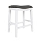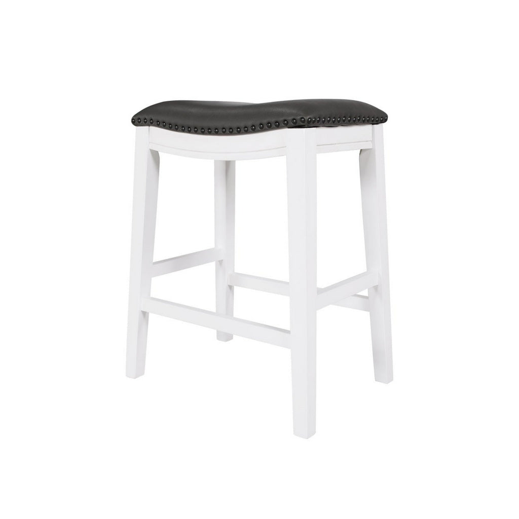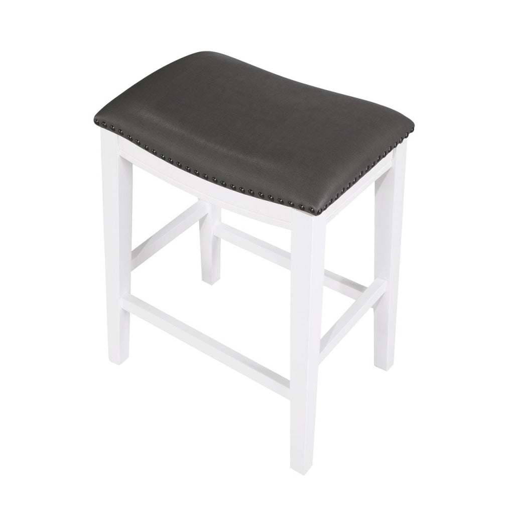 Ani 25 Inch Counter Stool Set of 2, Gray Faux Leather, Saddle Seat, White By Casagear Home