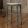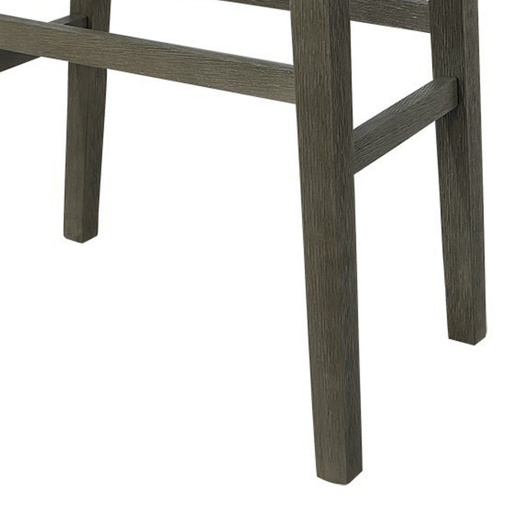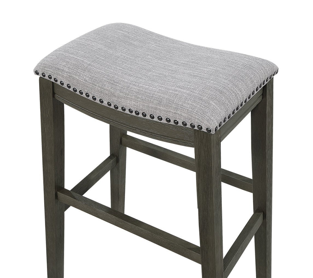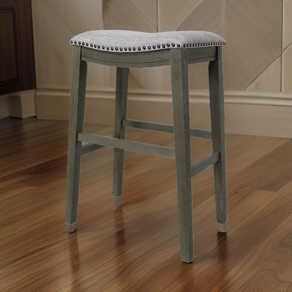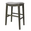 Ani 29 Inch Barstool Set of 2, Saddle Seat, Nailhead Trim, Light Gray Wood By Casagear Home