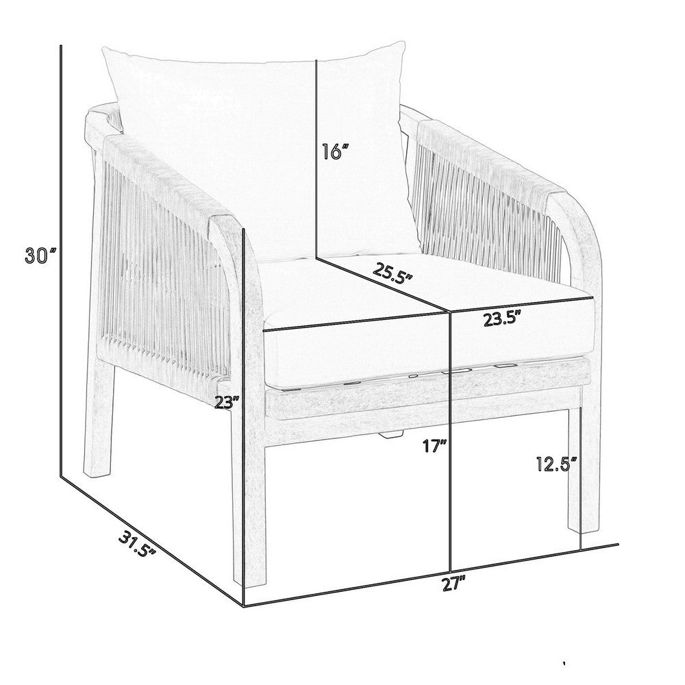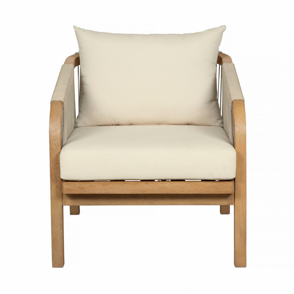 Ann 32 Inch Outdoor Accent Chair, Brown Eucalyptus, Rope, Ivory Olefin By Casagear Home