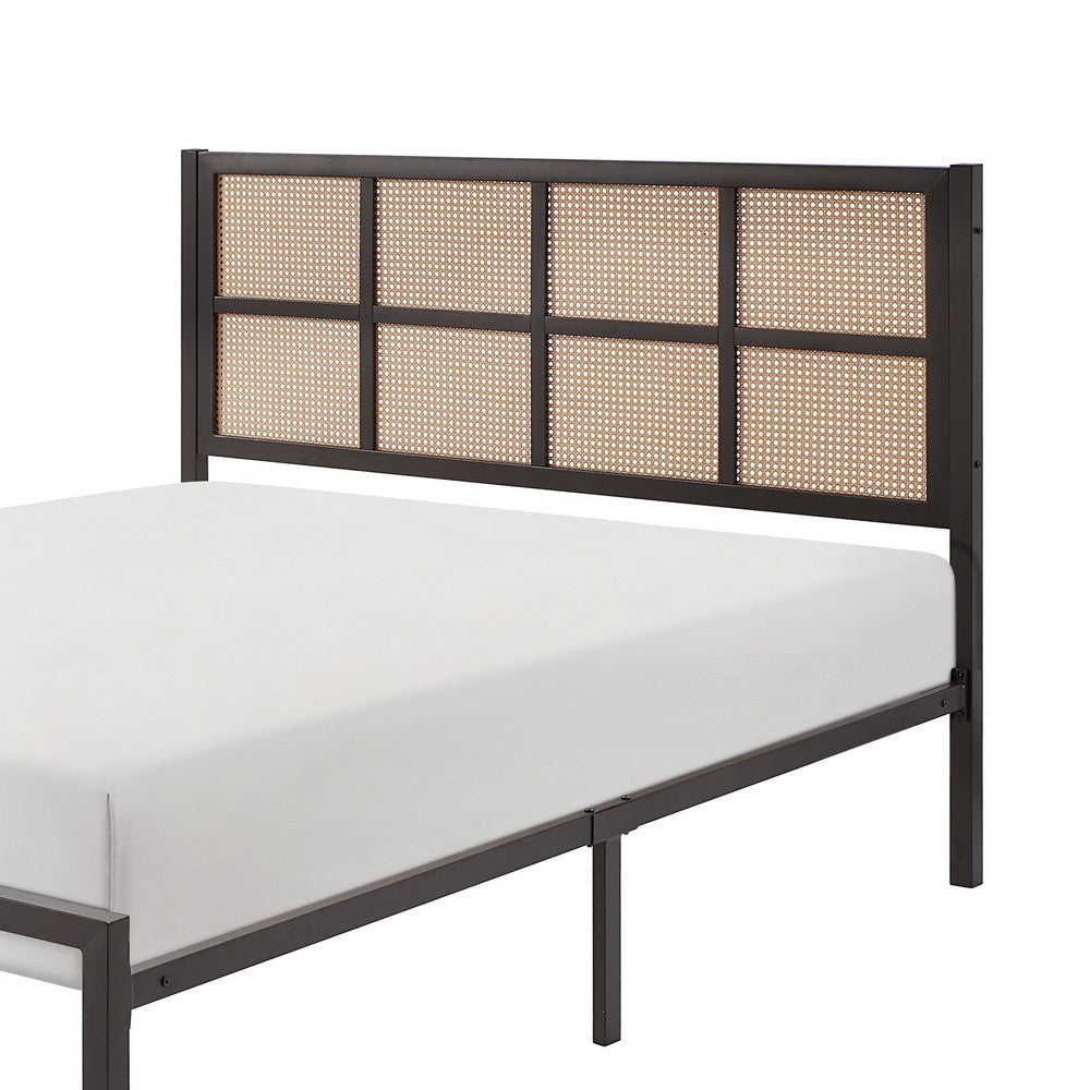 Annie Twin Platform Metal Bed, Brown Faux Cane Panel Headboard, Dark Bronze By Casagear Home