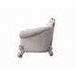Step into elegance with this accent chair, featuring two-tone ivory fabric and an antique pearl finish. The chair's light gray fabric and crystal-like button tufting are enhanced with hand-brushed gold accents. Detailed with nailhead trim and raised scrollwork, this chair has two pillows for added luxury and comfort, embodying a grand, classic design. Check out our Antoine collection for more.