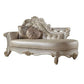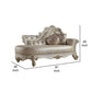Description:Experience classical elegance with this chaise lounger, featuring synthetic leather in a stunning antique pearl finish. Its hand-brushed gold paint enhances its opulent design. Its button-tufted backrest, padded seat, and arms are complemented by nailhead trim and ornamental scrolled legs, offering a luxurious touch to your space. Check out our Antoine collection for more.