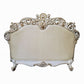 Embrace traditional elegance with this cozy loveseat, upholstered in champagne synthetic leather and finished in antique pearl. The piece features button tufting, nailhead trim, and ornate scrolled molding. The three included pillows offer a sophisticated look and plush comfort, making it a perfect centerpiece for any refined living space. Check out our Antoine collection for more options.