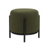 Say hello to this chic and versatile boucle ottoman stool, designed to elevate your seating experience. Featuring a round cushioned polyester upholstered seat in a sophisticated green finish, it exudes modern charm and comfort. The sleek black metal frame, adorned with elegant bar supports, adds a touch of industrial flair while ensuring stability. Check out our Aop collection for more colors.