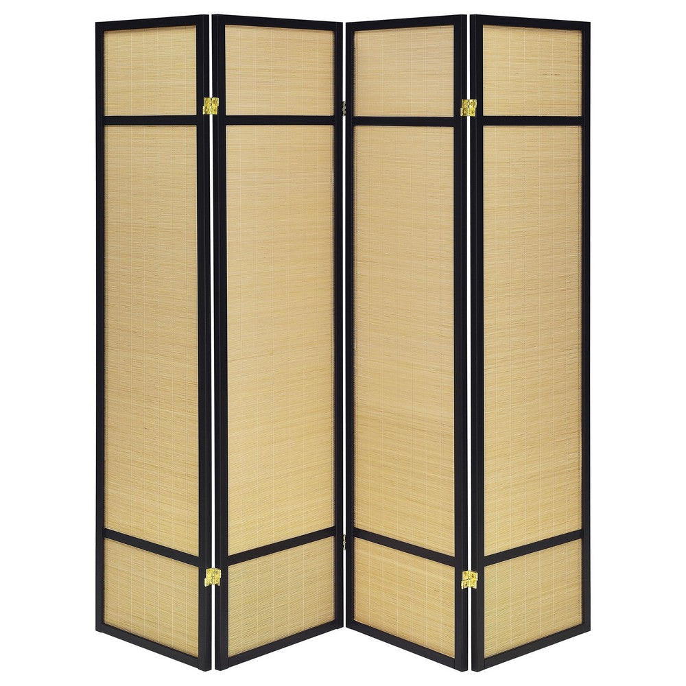 - Neutral natural-finished panels with black frame for a sleek contrast