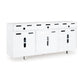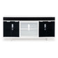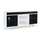 Combining a white high-gloss finish with black glass doors, this TV media entertainment center proves opposites attract. Featuring ample space for media devices, a flat-screen TV, and a soundbar, it also has space for an electric fireplace, not included. The sleek design and functionality make it a smart choice for modern living spaces. Check out our Ardon collection for more options.