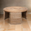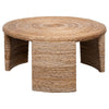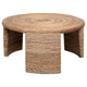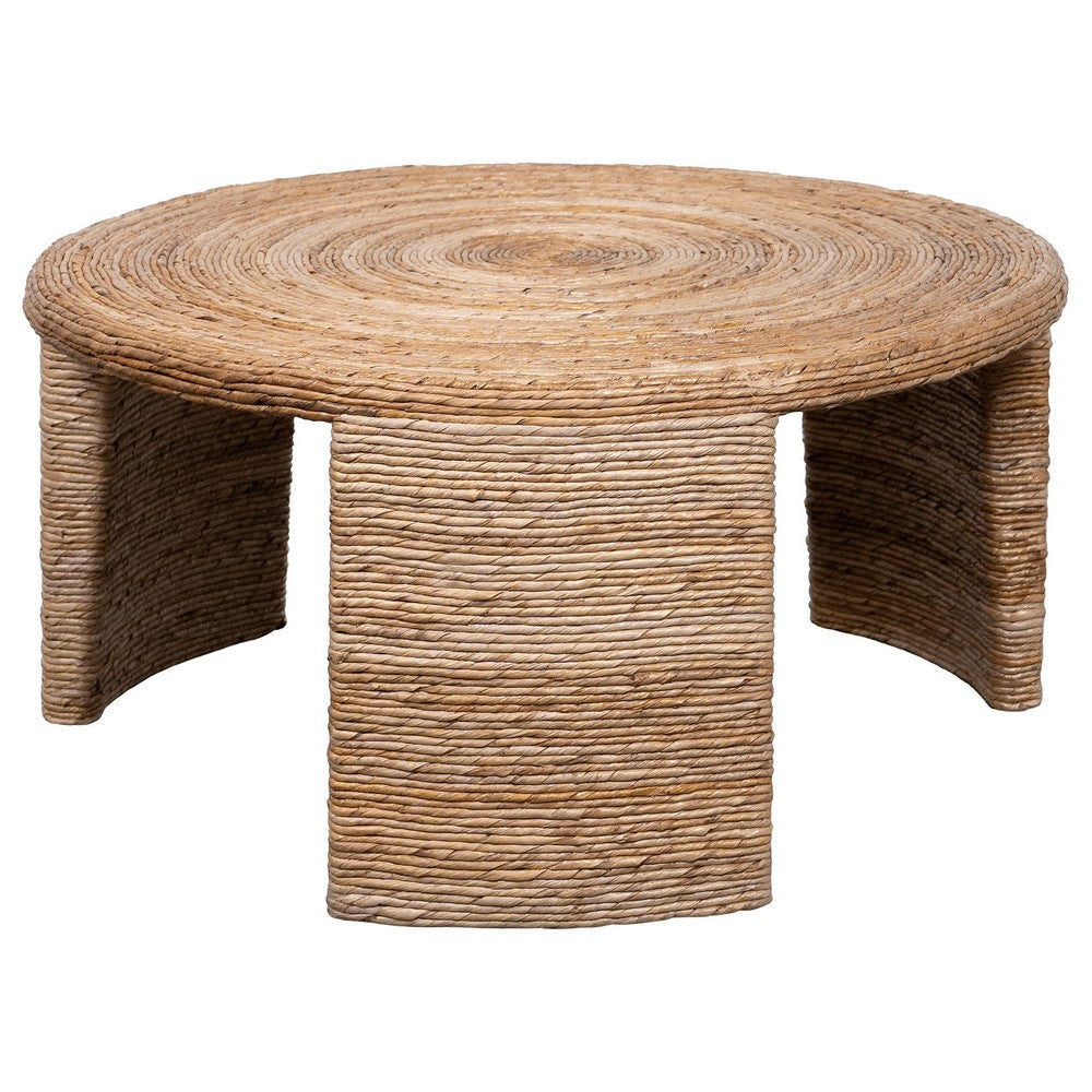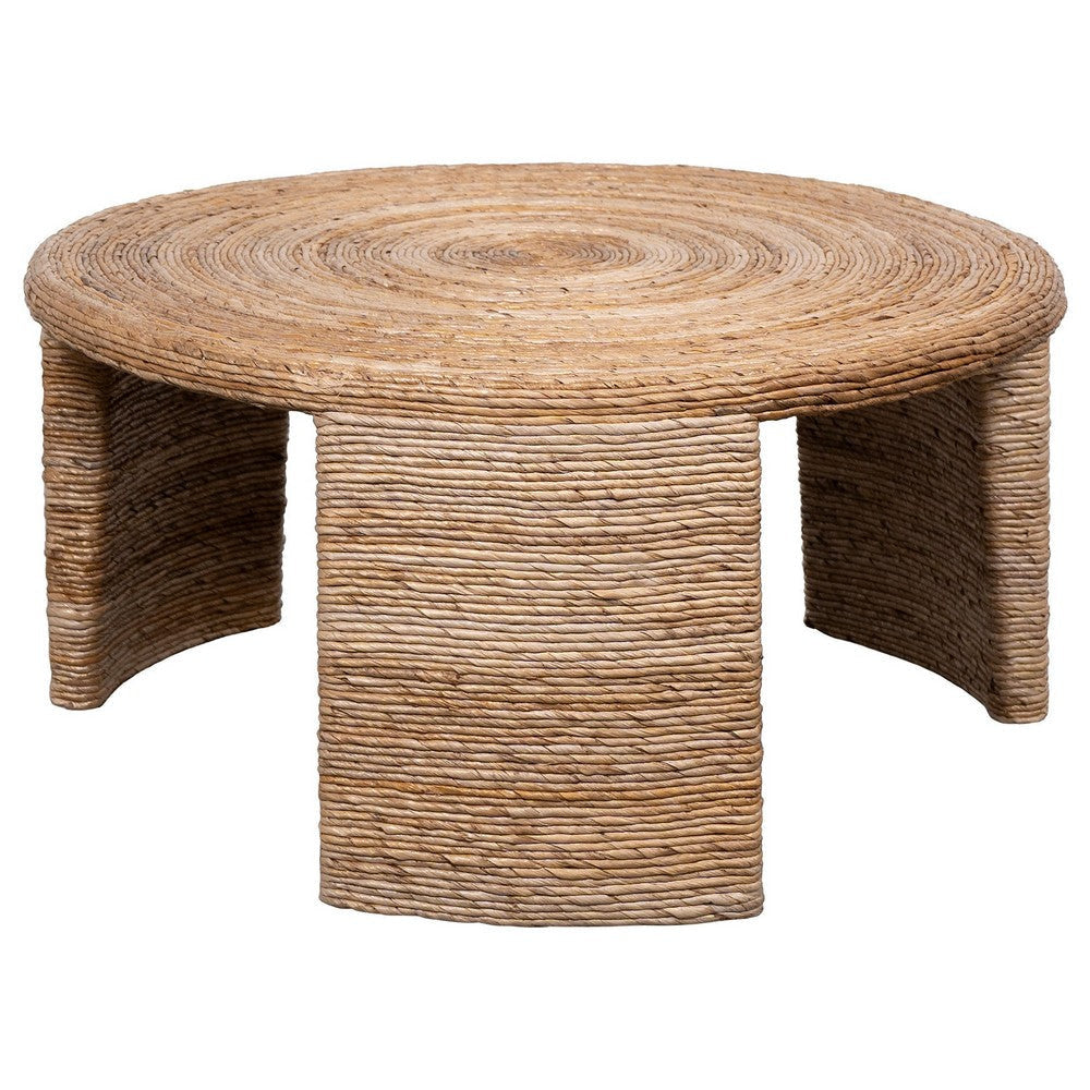 Asha 36 Inch Coffee Table, Round Shaped Top with Natural Rattan Wrapping By Casagear Home